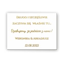 - Napis: "Długo i Szczęśliwie zaczyna się właśnie tu... Dziękujemy, że jesteście razem z nami! (Imiona, data ślubu)"