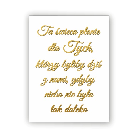 Nasza unikalna tablica weselna "Ta świeca płonie dla tych, którzy byliby dziś z nami, gdyby niebo nie było tak daleko" to idealny dodatek do uroczystości ślubnych.